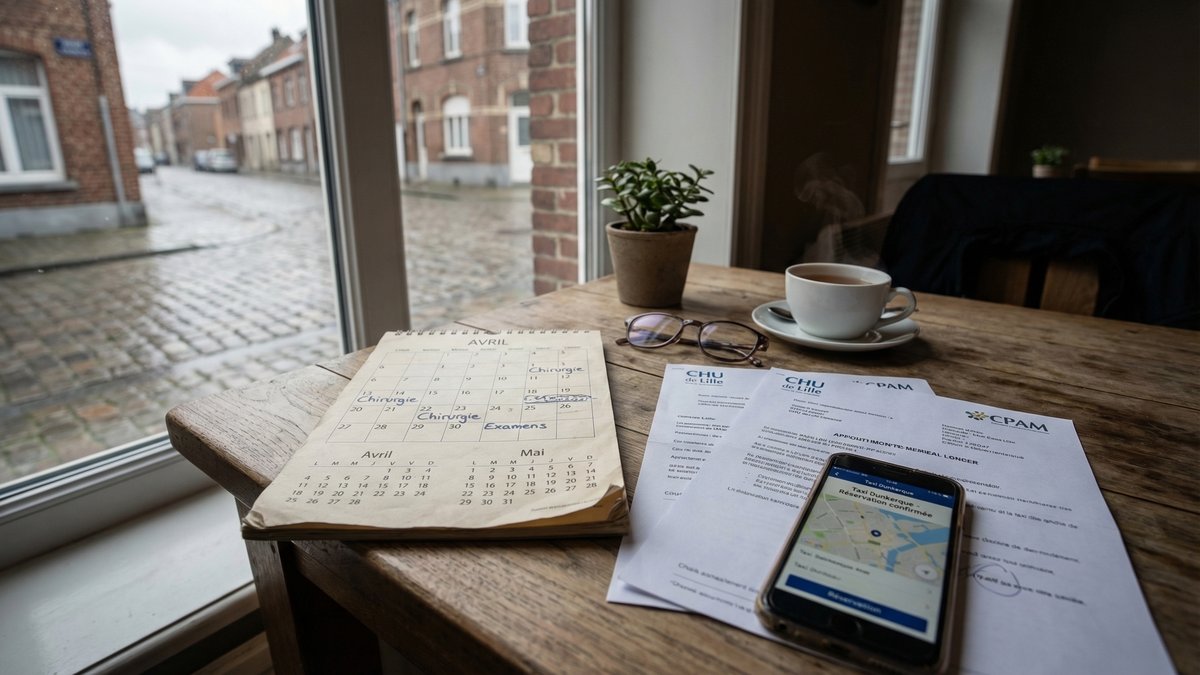 Avec le retour des beaux jours, les blocs opératoires du Nord tournent à plein régime et les transports médicaux deviennent une vraie course d'endurance. Entre convocations, reports, taxi VSL conventionné et paperasse CPAM, beaucoup de patients s'épuisent avant même d'entrer au bloc. Parlons concrètement d'organisation, pas de théories.